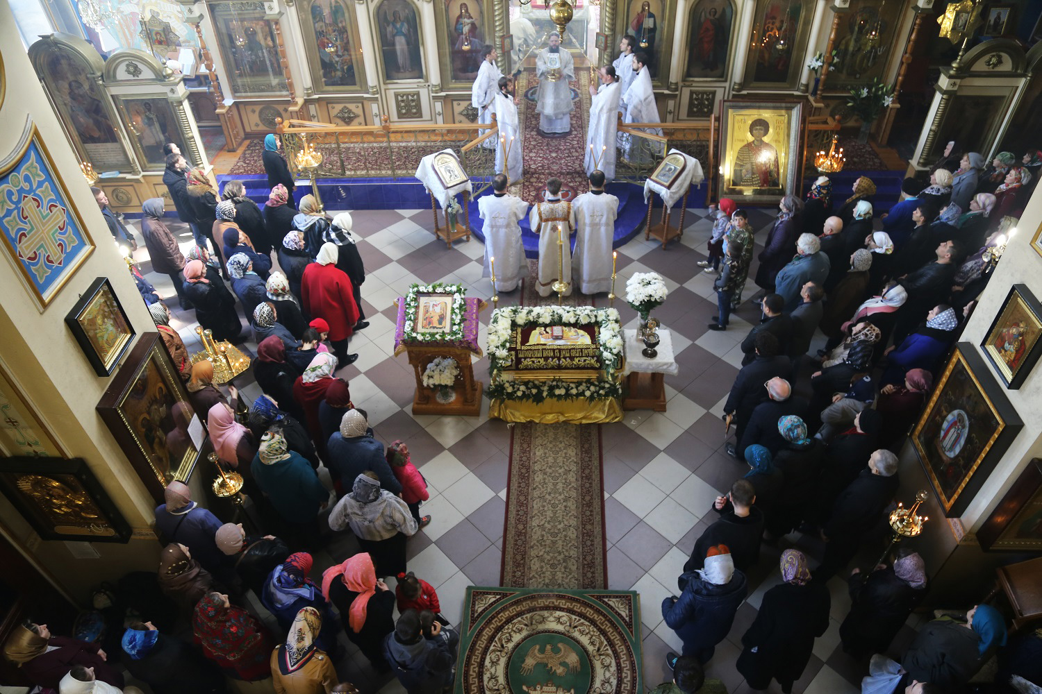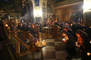 Вечером 6 апреля 2018 года архиепископ Махачкалинский и Грозненский Варлаам совершил утреню Великой Субботы с полиелеем праздника Благовещения Пресвятой Богородицы и чином погребения Господа нашего Иисуса Христа в Свято-Успенском кафедральном соборе г. Махачкалы.