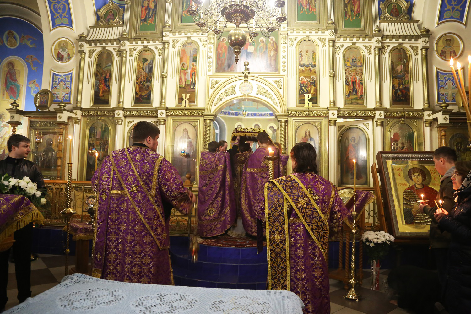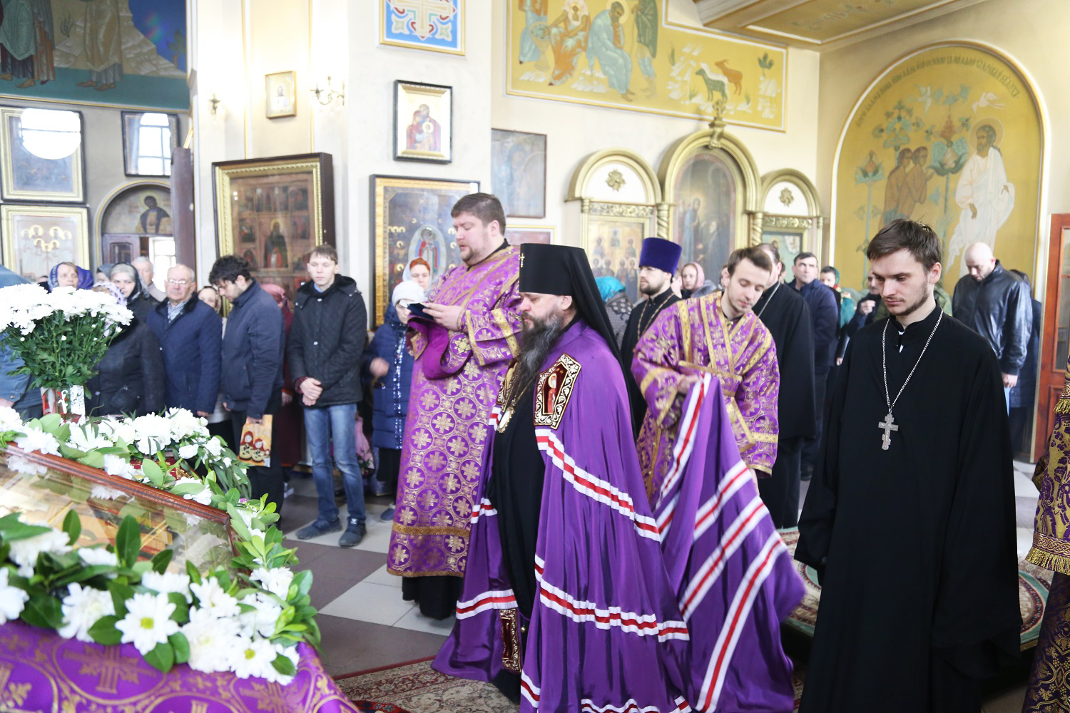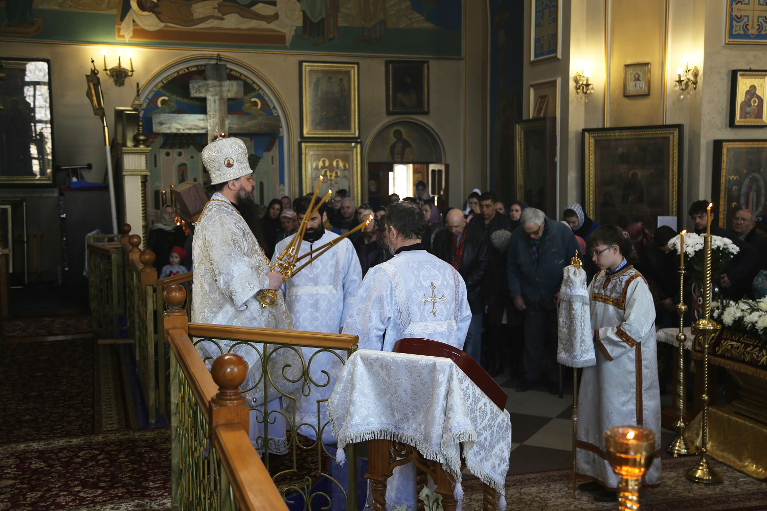 По окончании богослужения правящий архиерей еще раз поздравил присутствующих с наступающим праздником, а причастников — с принятием Святых Христовых Таин.