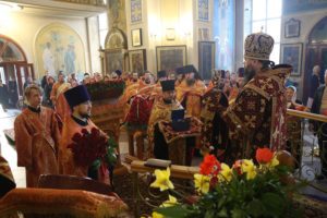 Его Высокопреосвященству сослужили отцы благочинные, настоятели храмов, штатные клирики епархии.