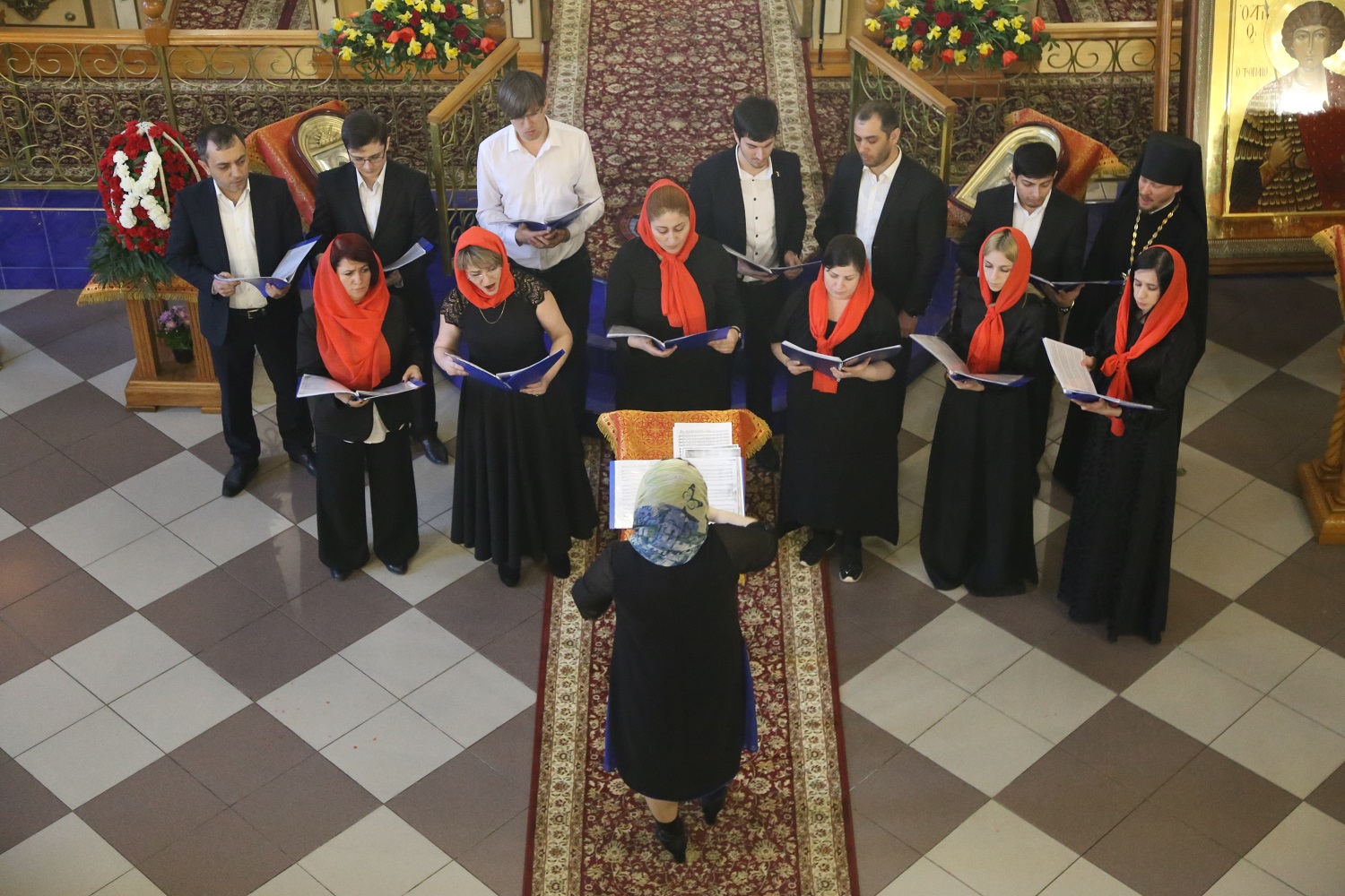 В завершение в Свято-Успенском соборе состоялся праздничный концерт духовной музыки в исполнении архиерейского хора Махачкалинской епархии.