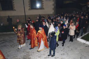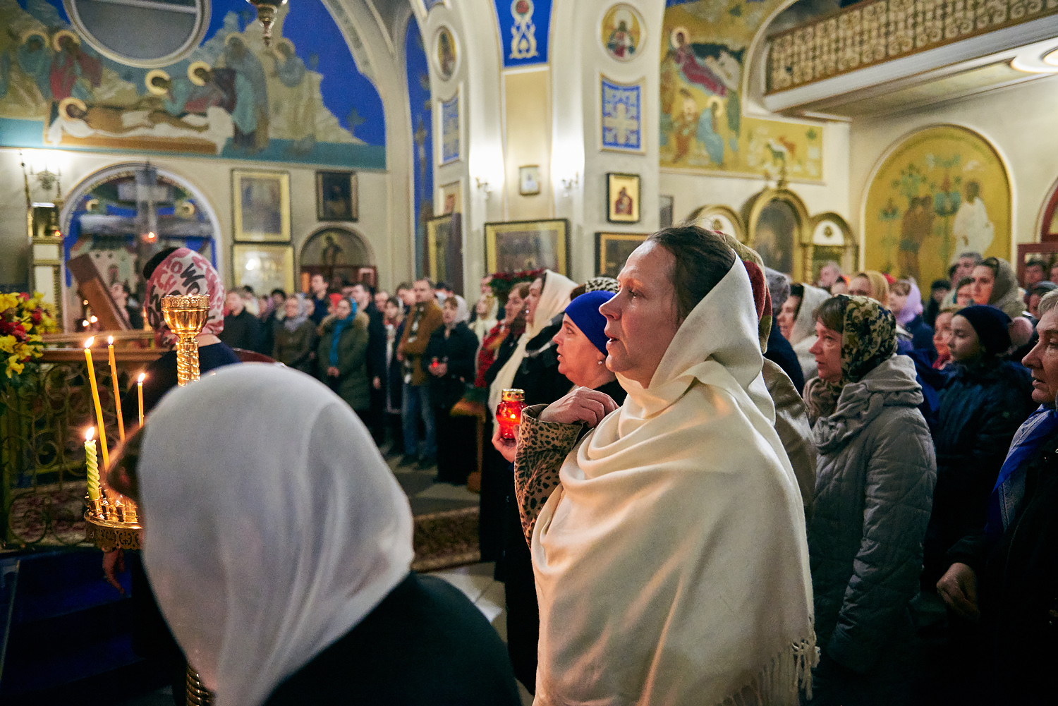 После этого при закрытых дверях в притворе кафедрального храма началась пасхальная утреня.