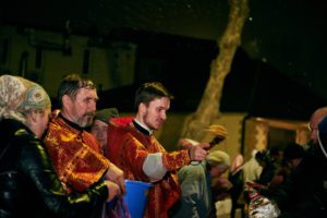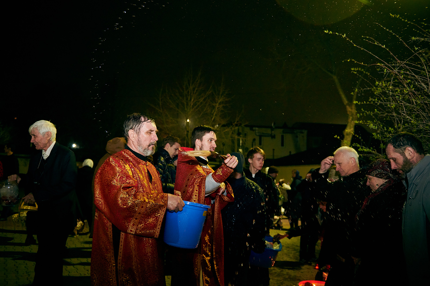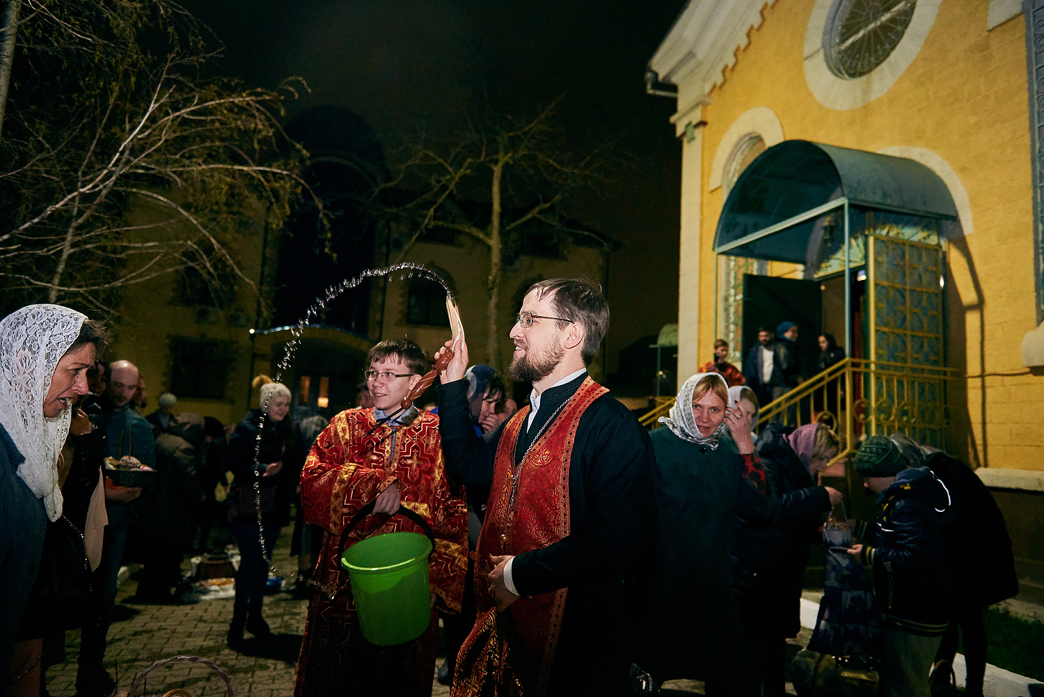 По окончании ночного богослужения состоялось традиционное освящение пасхальной снеди.