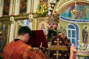Его Высокопреосвященству сослужили клирики кафедрального храма.