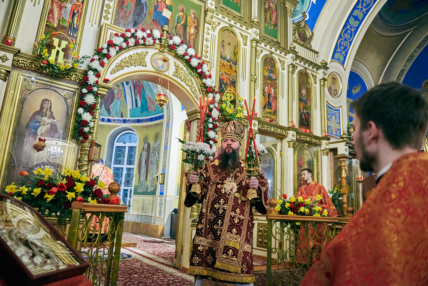 По окончании пасхальной утрени правящий архиерей возглавил пасхальную Божественную литургию.