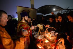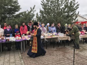 По окончании Божественной Литургии отец Сергий освятил принесенную в изобилии прихожанами пасхальную снедь.