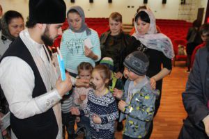 В завершение священник от всего сердца поздравил прихожан и военнослужащих с праздником Воскресения Христова и раздал детям пасхальные подарки.