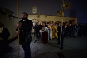 После полунощницы вокруг храма был совершен крестный ход, после чего впервые был провозглашен исполненный ликования пасхальный возглас: «Христос воскресе!»