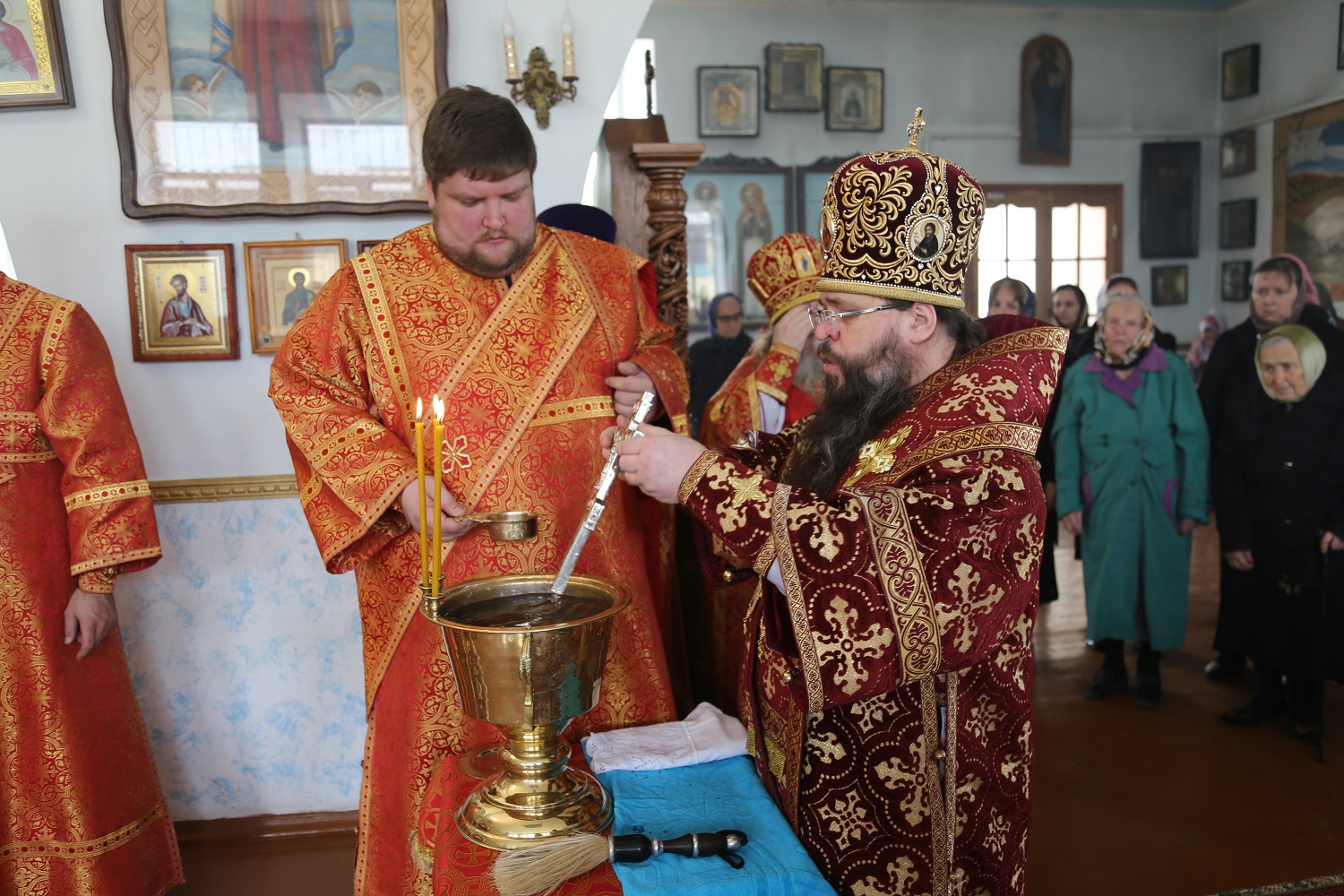 По отпусте архиепископ Варлаам совершил водосвятный молебен в честь Пресвятой Богородицы ради Ее «Живоносного Источника».