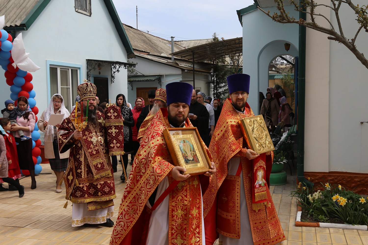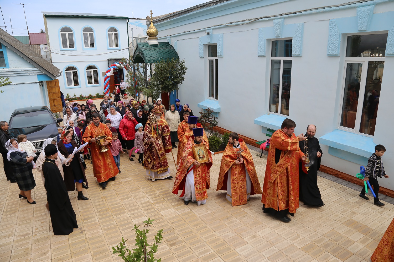 Затем во дворе храма состоялось торжественное открытие нового здания воскресной школы.