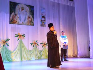 По благословению архиепископа Махачкалинского и Грозненского Варлаама поздравить с Пасхой Христовой юных зрителей пришел благочинный Кизлярского церковного округа, настоятель Свято-Георгиевского собора г. Кизляра иерей Павел Каликин.