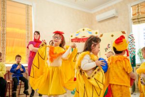 Следом юные воспитанники школы продемонстрировали сценку «Курочка с цыплятами».