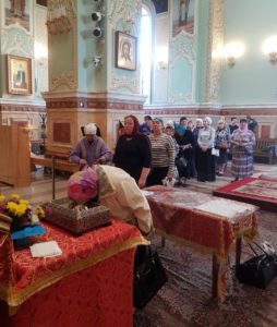 По окончании богослужения перед ковчегом со святыней было совершено водосвятное молебное пение с чтением акафиста святому угоднику Божию Луке, после чего богомольцы по очереди приложились к деснице святителя.