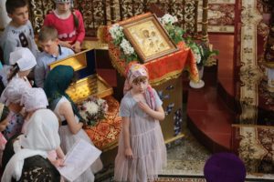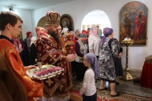 Богослужебные песнопения исполнял архиерейский хор Махачкалинской епархии (регент – Наталья Макеева).