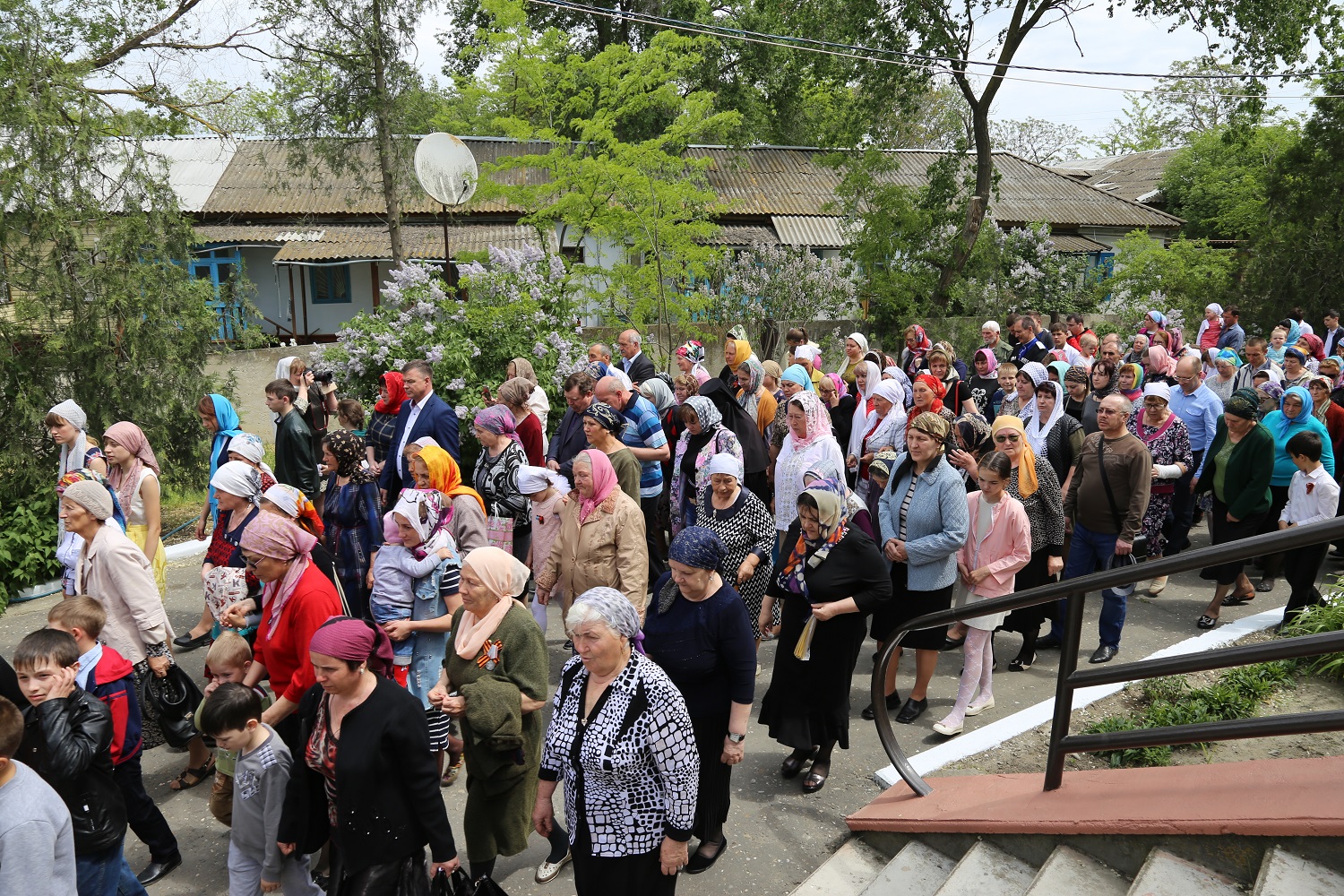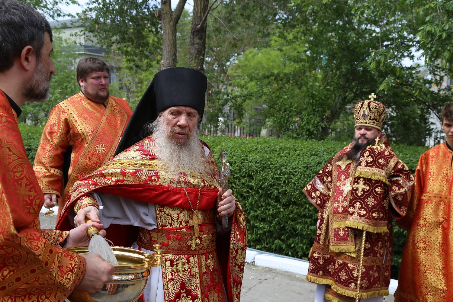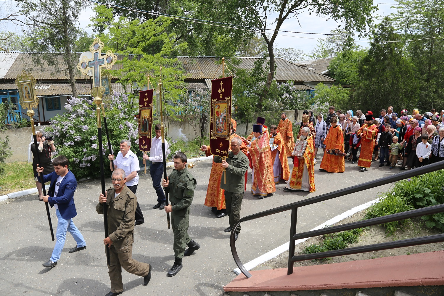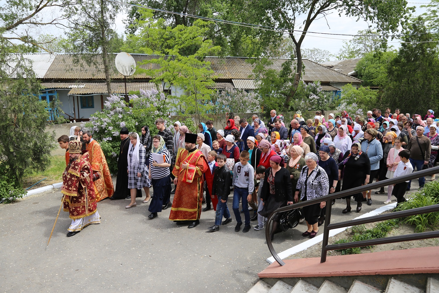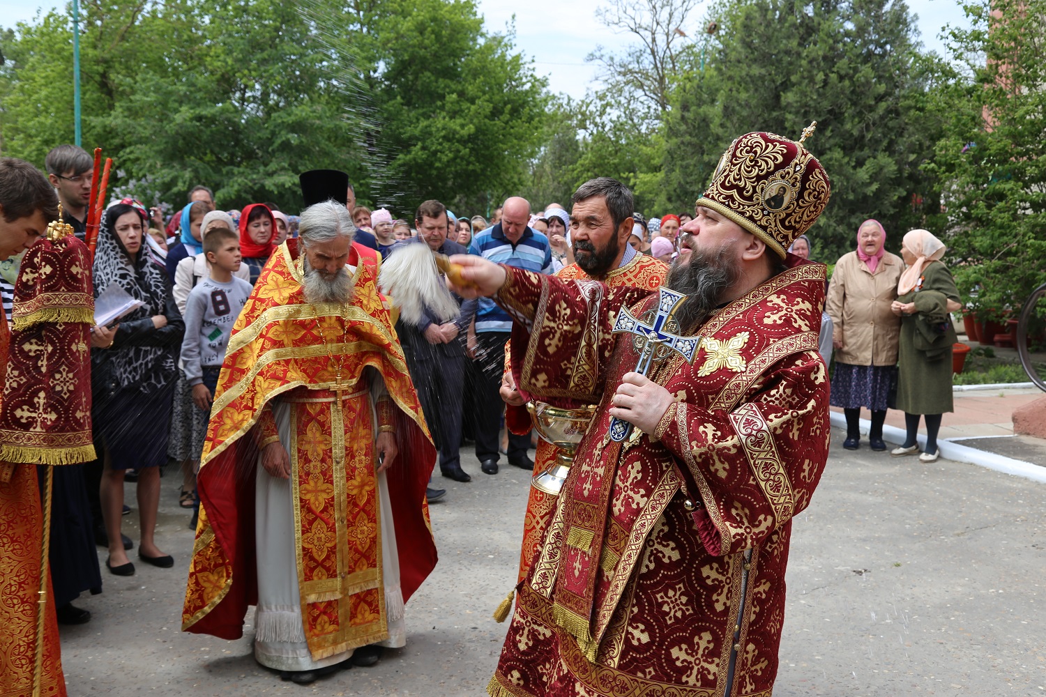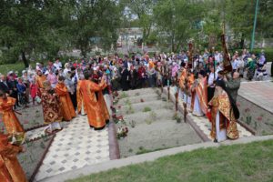 По заамвонной молитве был совершен крестный ход вокруг храма, во время которого духовенство и молящиеся остановились на месте упокоения невинно убиенных прихожанок Свято-Георгиевского собора и провозгласили им вечную память.