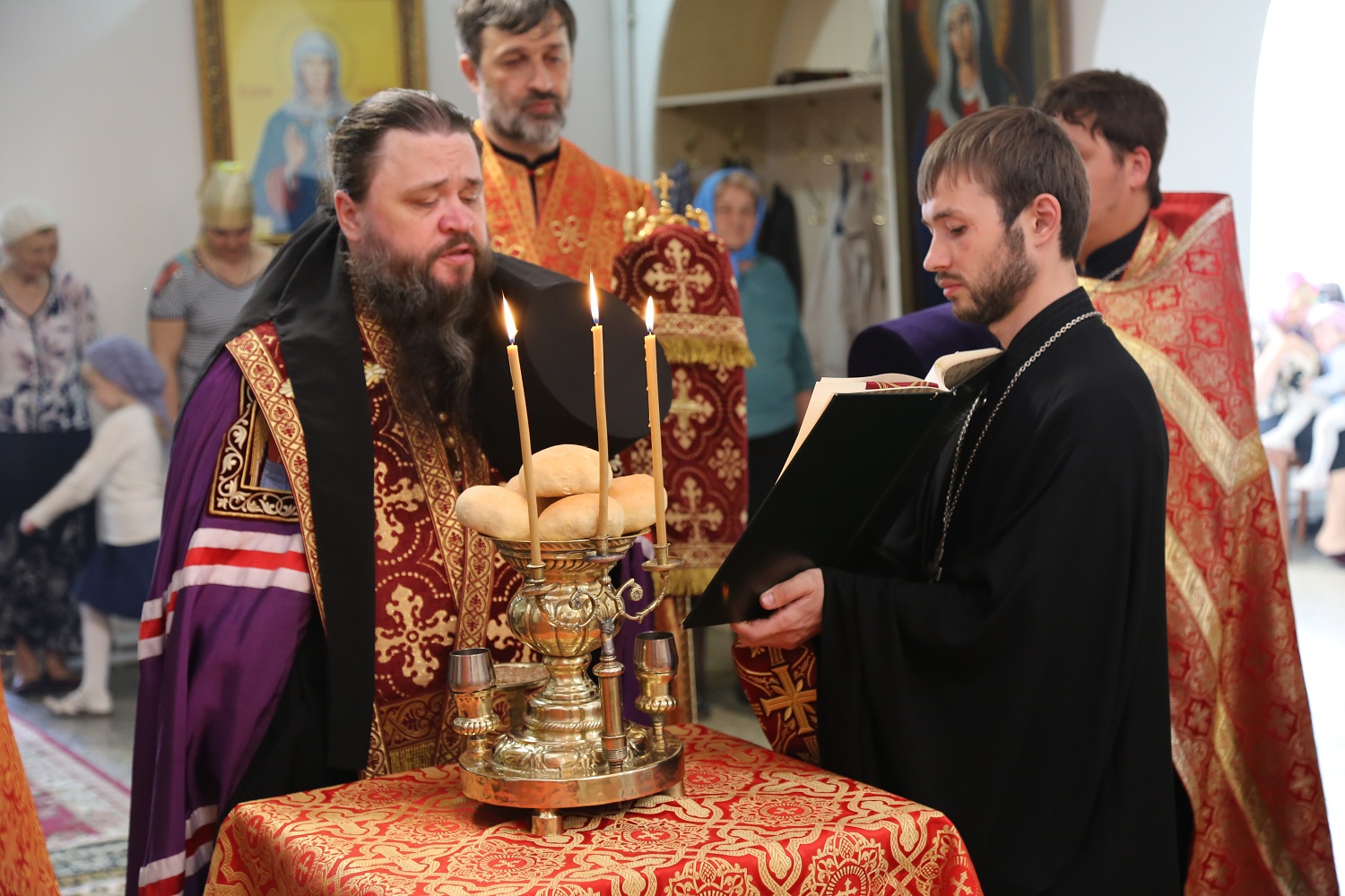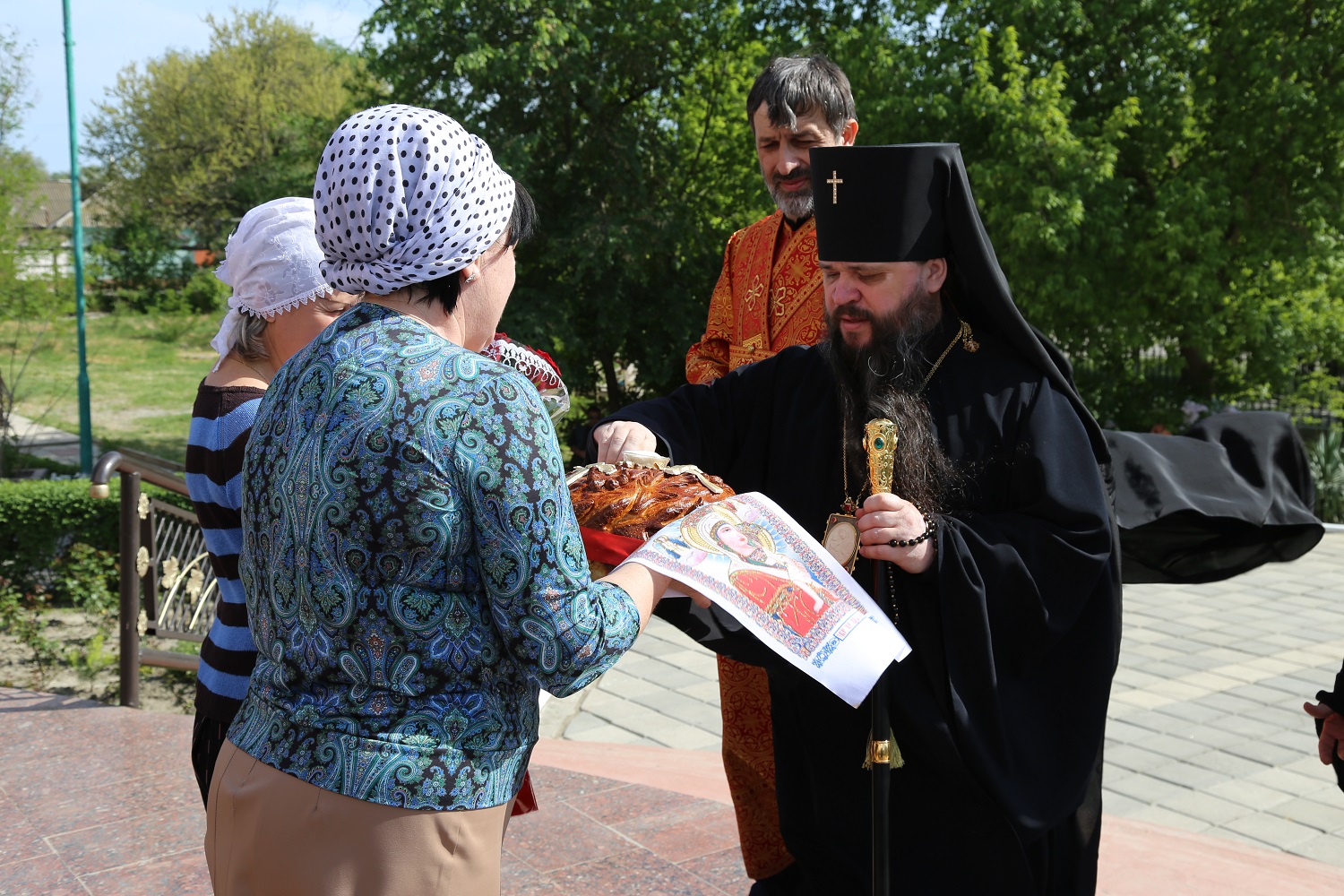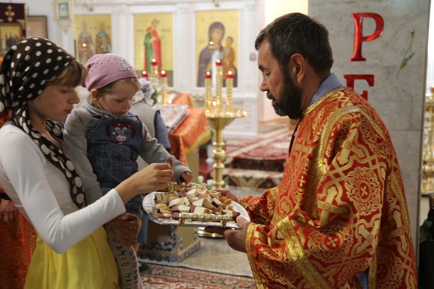 Настоятель отец Павел поблагодарил почетных гостей и архипастыря за радость совместного торжества, после чего воспитанники воскресной школы при Свято-Георгиевском соборе поздравили владыку Варлаама и всех верующих с Воскресением Христовым и престольным праздником, прочитав стихи.