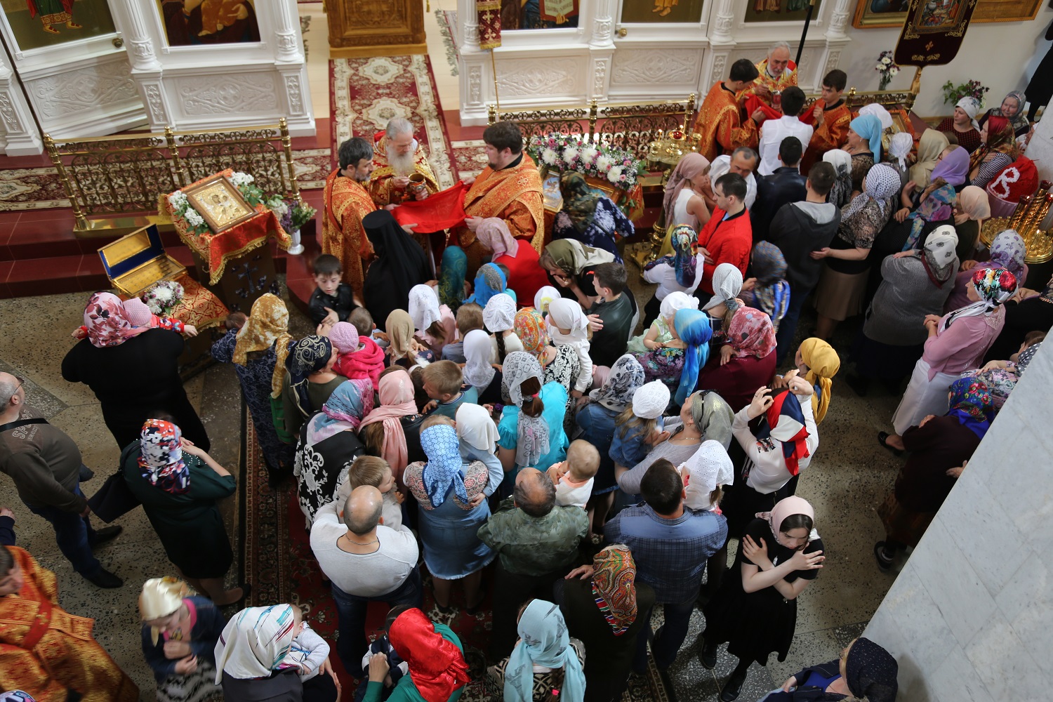 По возвращении в собор владыка Варлаам вознес молитву к покровителю Кизляра — великомученику Георгию Победоносцу, после чего было совершено величание и провозглашены уставные многолетия.