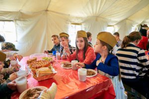 Воспитанники воскресной школы познакомились и со служебными собаками. Затем всех пригласили в столовую, где всем без исключения пришлась по вкусу армейская гречневая каша с мясом.