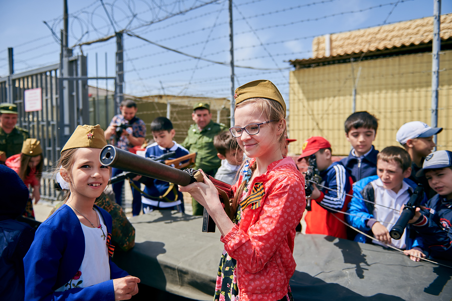 Вначале ребята присутствовали на воинском построении, где солдатами были продемонстрированы навыки ведения боя, после чего состоялась экскурсия по воинской части. Особый интерес у ребят вызвало знакомство с современным оружием, большое впечатление на них произвели БМП — боевые машины пехоты. Также ребята смогли примерить на себя военную форму.