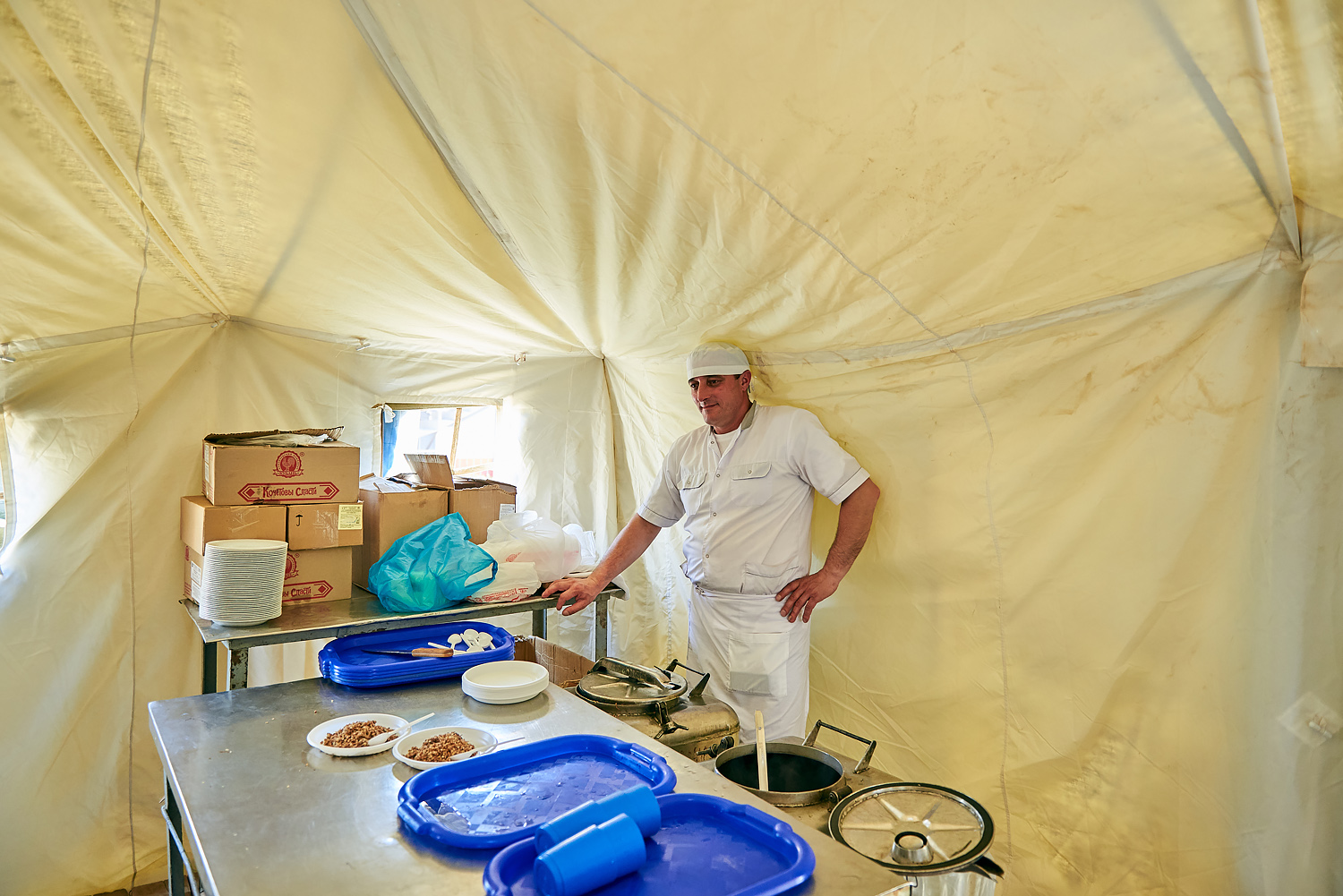 Воспитанники воскресной школы познакомились и со служебными собаками. Затем всех пригласили в столовую, где всем без исключения пришлась по вкусу армейская гречневая каша с мясом.
