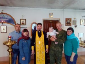 Священнослужитель отслужил в часовне, расположенной на территории части, молебное пение, после чего совершил Таинство Крещения над ребенком одного из военнослужащих.