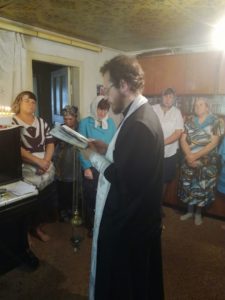 Священнослужитель совершил праздничное водосвятное молебное пение, после чего отслужил заупокойную литию об усопших жителях села и почивших сродниках собравшихся.