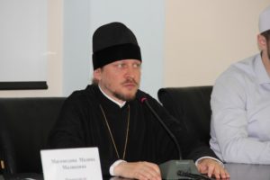 По благословению архиепископа Махачкалинского и Грозненского Варлаама в работе круглого стола пинял участие руководитель отдела по взаимоотношениям Церкви с обществом и СМИ иеромонах Иоанн (Анисимов).