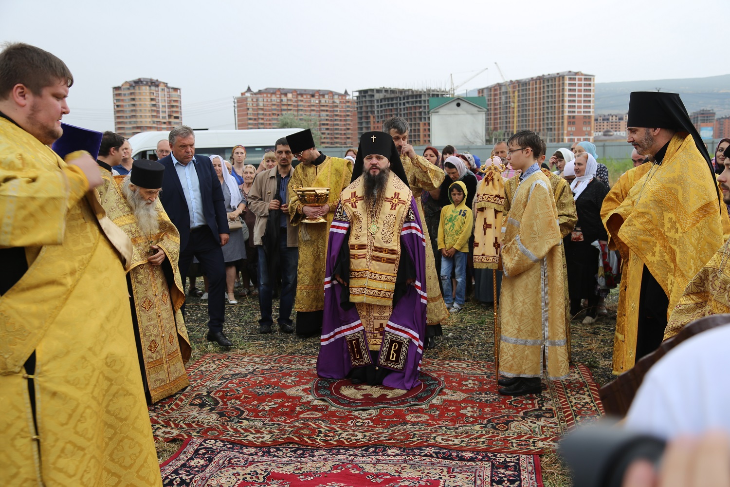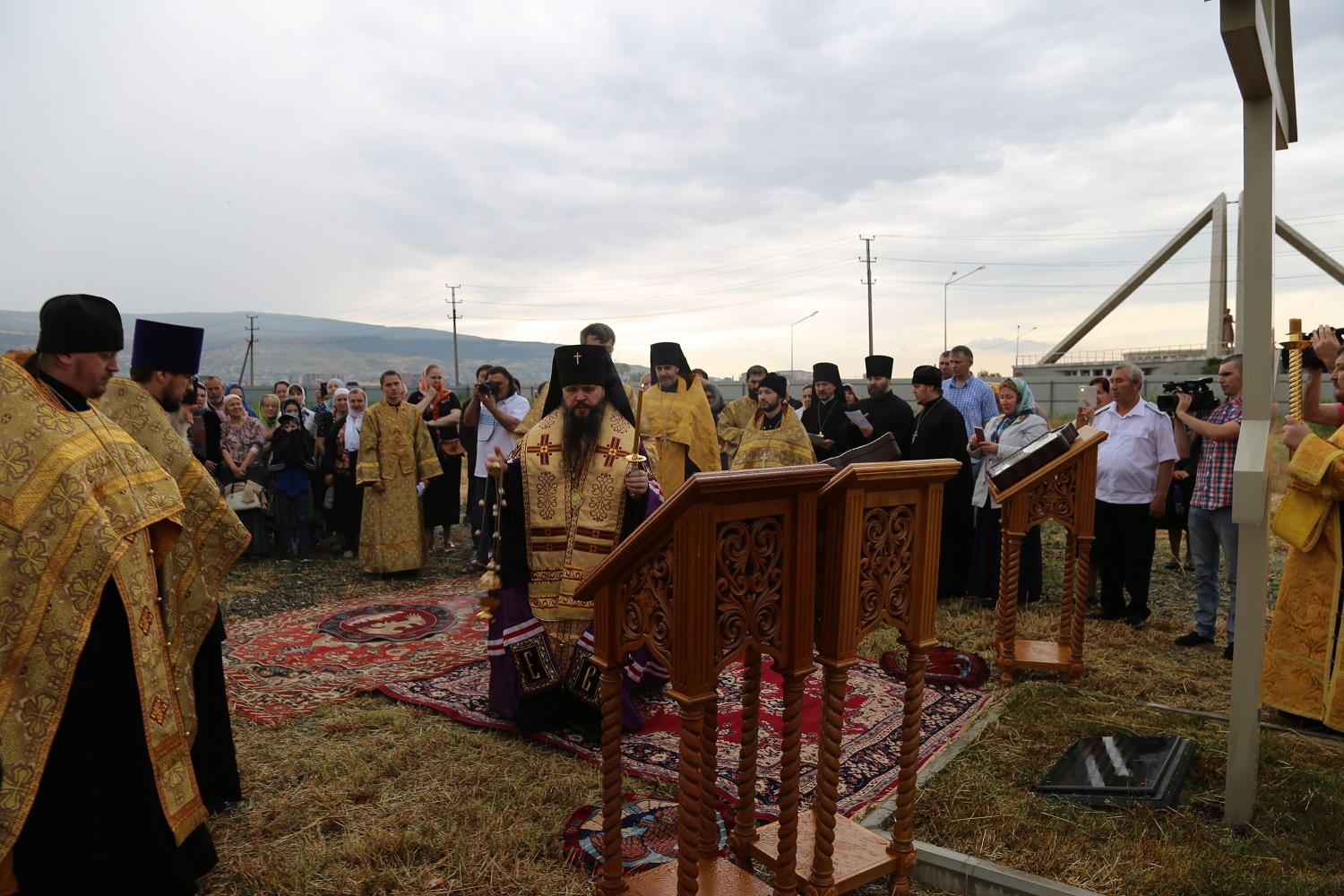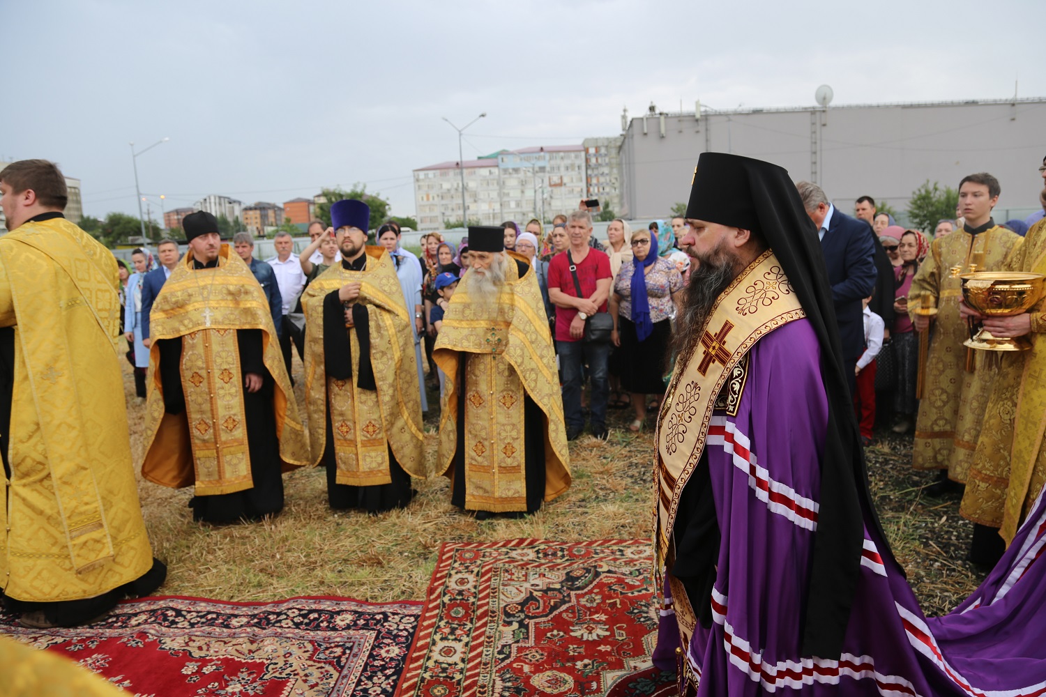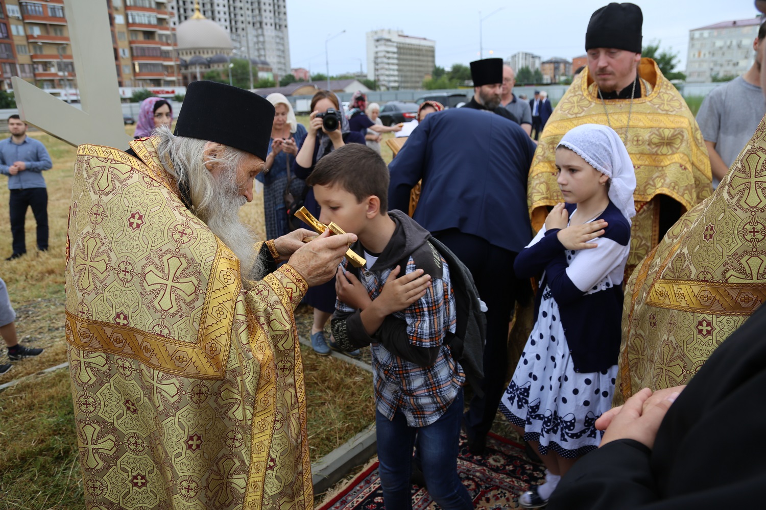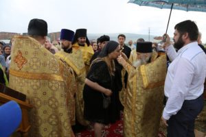 В поселке Редукторный дагестанской столицы, на месте возведения кафедрального собора в честь святого благоверного великого князя Александра Невского, архипастырь совершил молебное пение в сослужении схиархимандрита Илия и духовенства епархии.