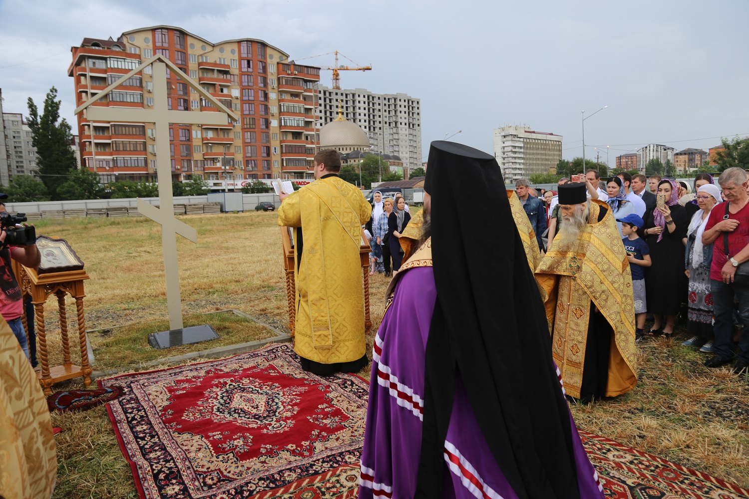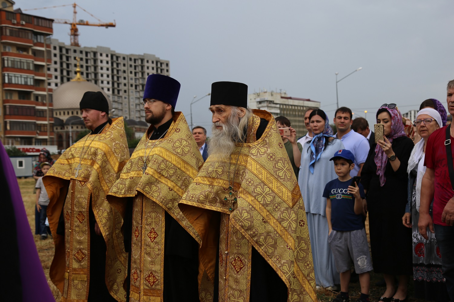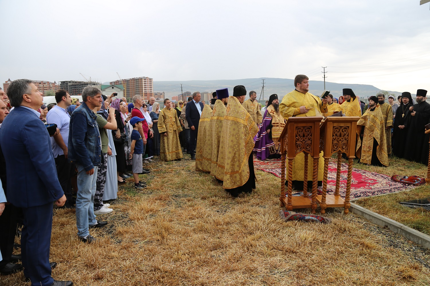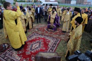В поселке Редукторный дагестанской столицы, на месте возведения кафедрального собора в честь святого благоверного великого князя Александра Невского, архипастырь совершил молебное пение в сослужении схиархимандрита Илия и духовенства епархии.
