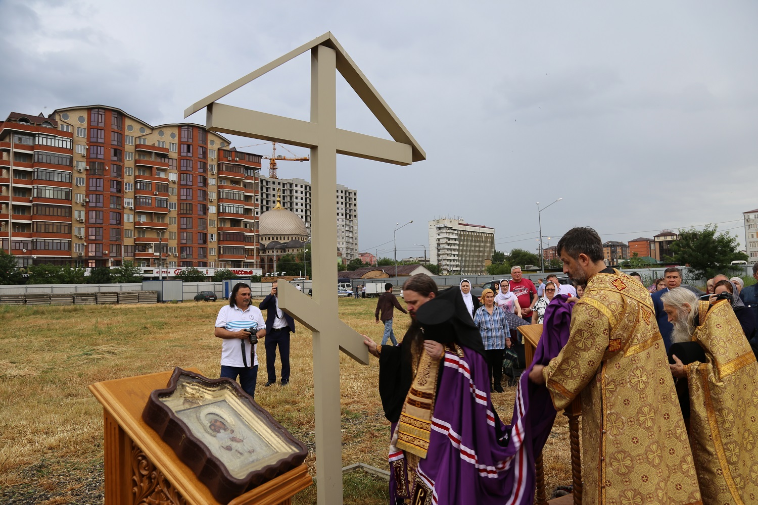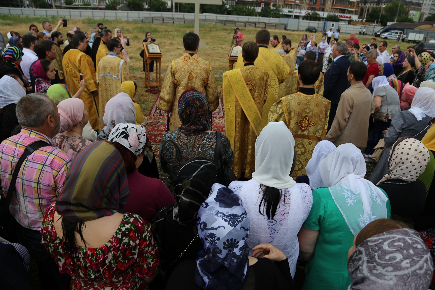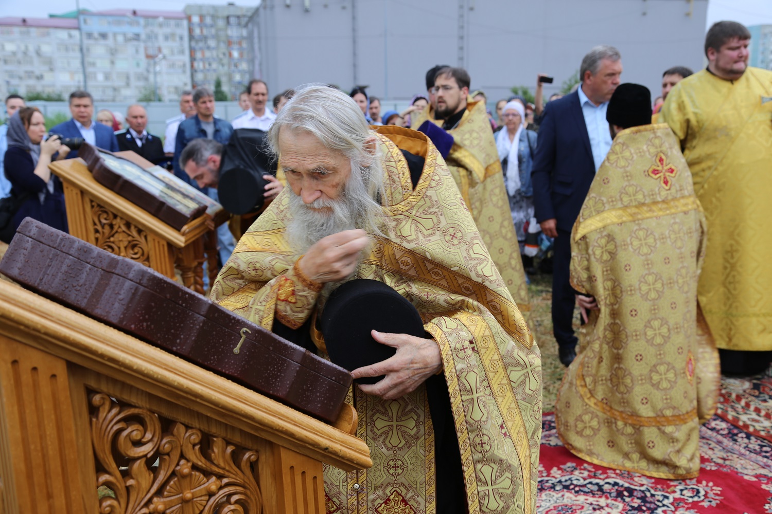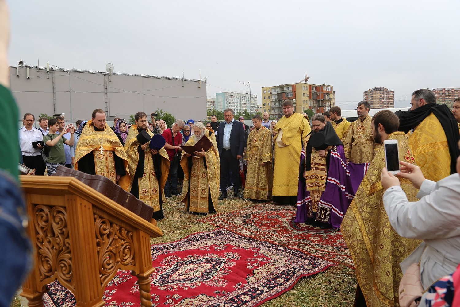 В поселке Редукторный дагестанской столицы, на месте возведения кафедрального собора в честь святого благоверного великого князя Александра Невского, архипастырь совершил молебное пение в сослужении схиархимандрита Илия и духовенства епархии.