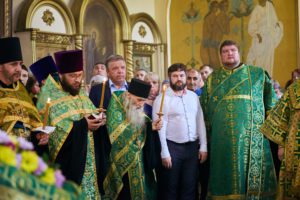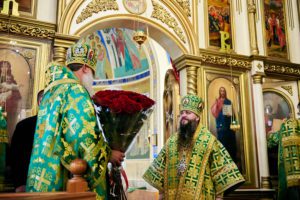 Прихожане Свято-Успенского собора преподнесли правящему архиерею букет цветов и поблагодарили за отеческую заботу.