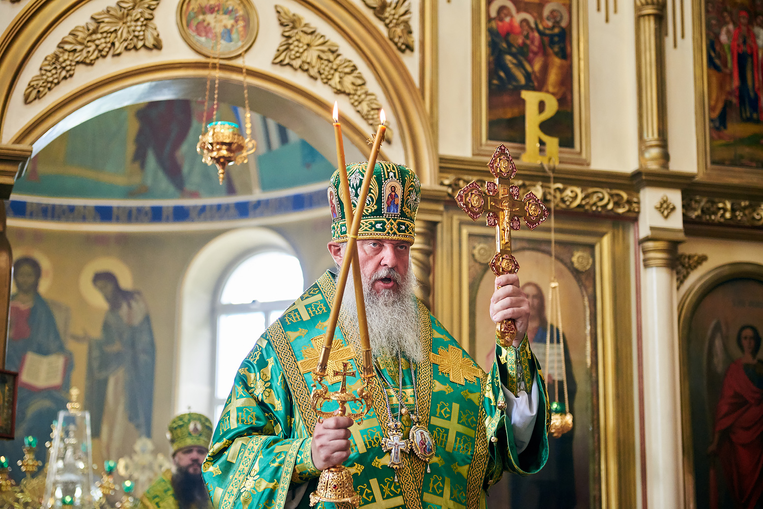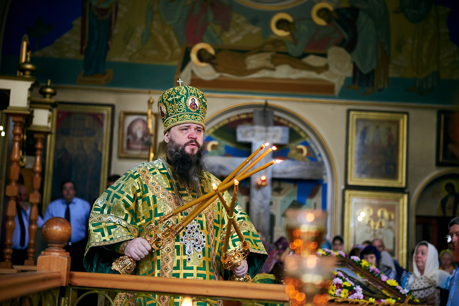 Затем с днем тезоименитства владыку Варлаама поздравил епископ Стефан. Пожелав здоровья и духовной крепости, владыка Стефан преподнес в дар Его Высокопреосвященству икону Пресвятой Богородицы и богослужебную утварь.