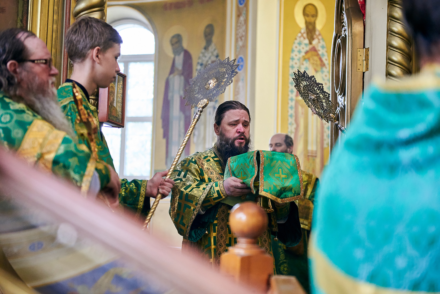 По заамвонной молитве было совершено славление, за которым архиепископ Варлаам вознес молитву преподобному Варлааму Хутынскому, после чего были провозглашены уставные многолетия.