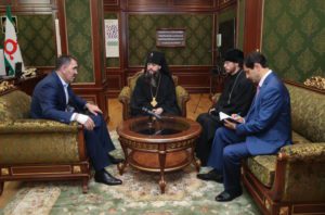 В первый рабочий день после переизбрания на пост Главы Республики Ингушетия Юнус-Бек Евкуров провел встречу с архиепископом Махачкалинским и Грозненским Варлаамом.