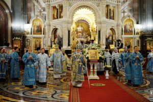 Вечером этого же дня, в канун праздника Рождества Пресвятой Владычицы нашей Богородицы и Приснодевы Марии, Святейший Патриарх Московский и всея Руси Кирилл совершил всенощное бдение в кафедральном соборном Храме Христа Спасителя в Москве.