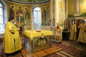Его Высокопреосвященству сослужили клирики кафедрального храма.