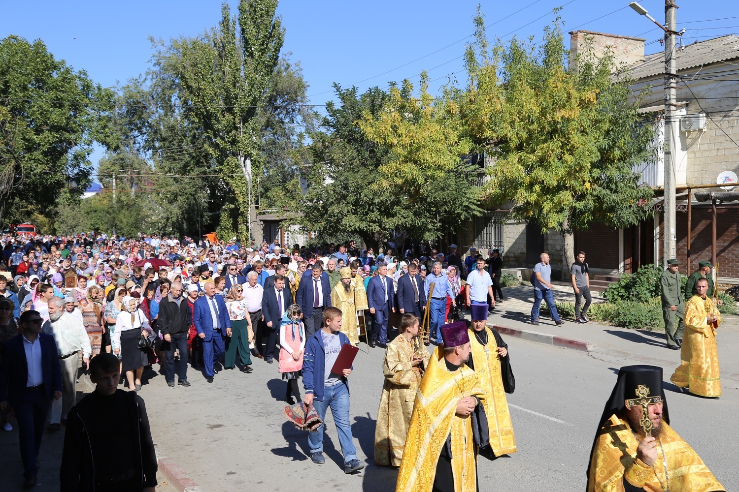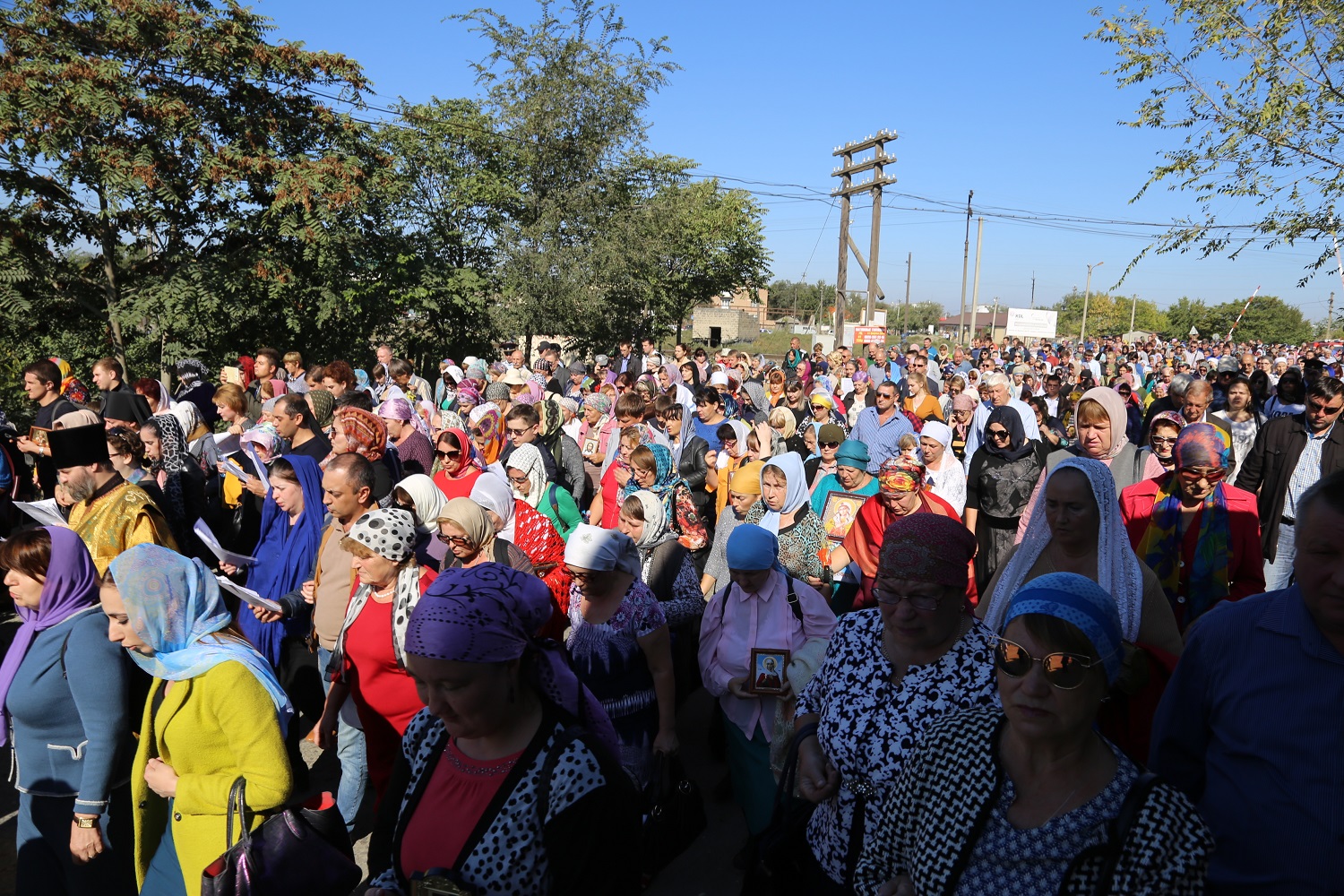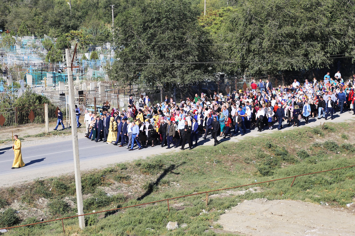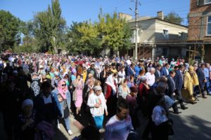 Крестный ход с иконами праздника Воздвижения Честного и Животворящего Креста Господня, святого великомученика Георгия Победоносца с частицей мощей и святого праведного Иоанна Русского, исповедника, с частицей мощей, собрал более двух тысяч православных верующих, которые преодолели путь длиной более 5 километров.