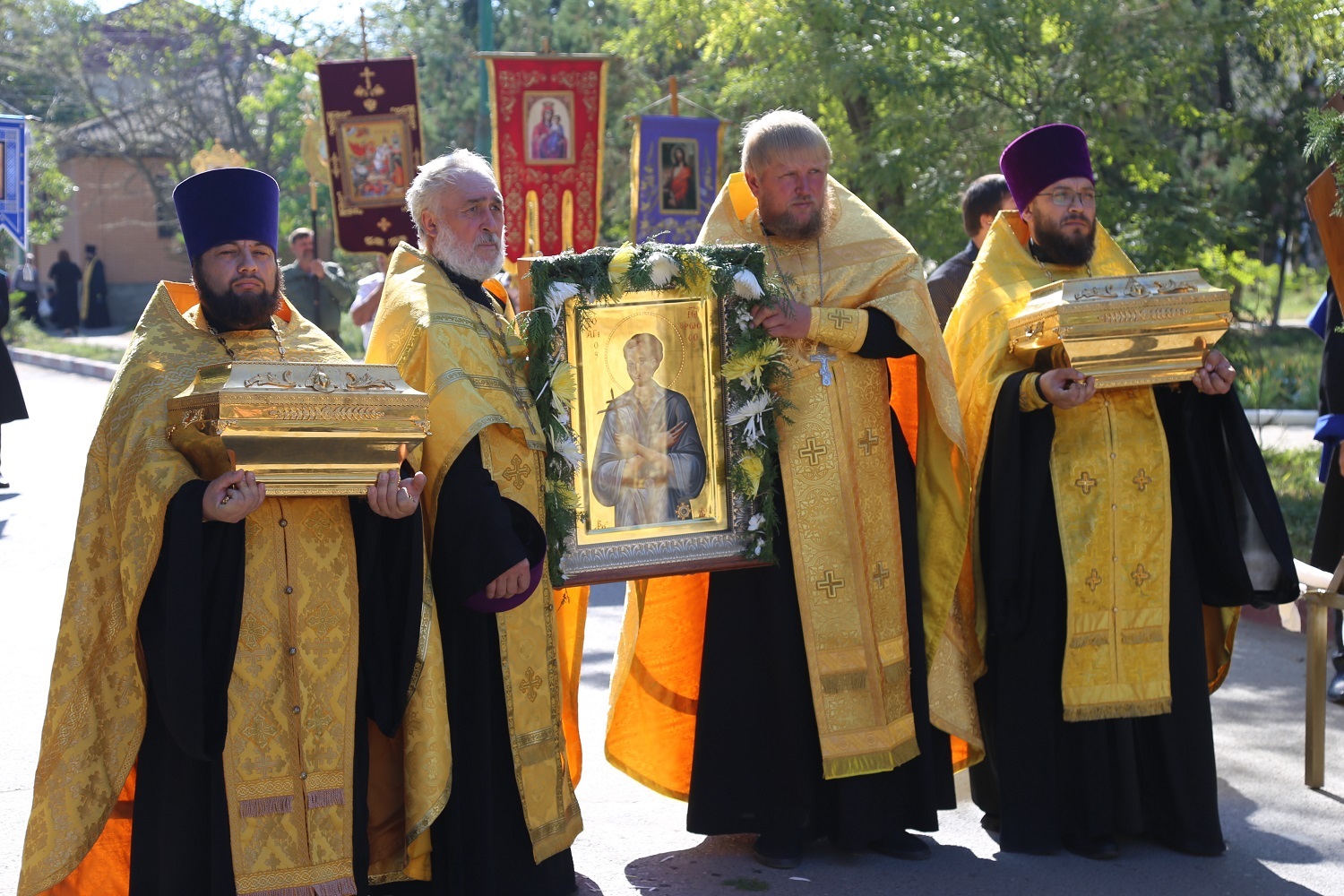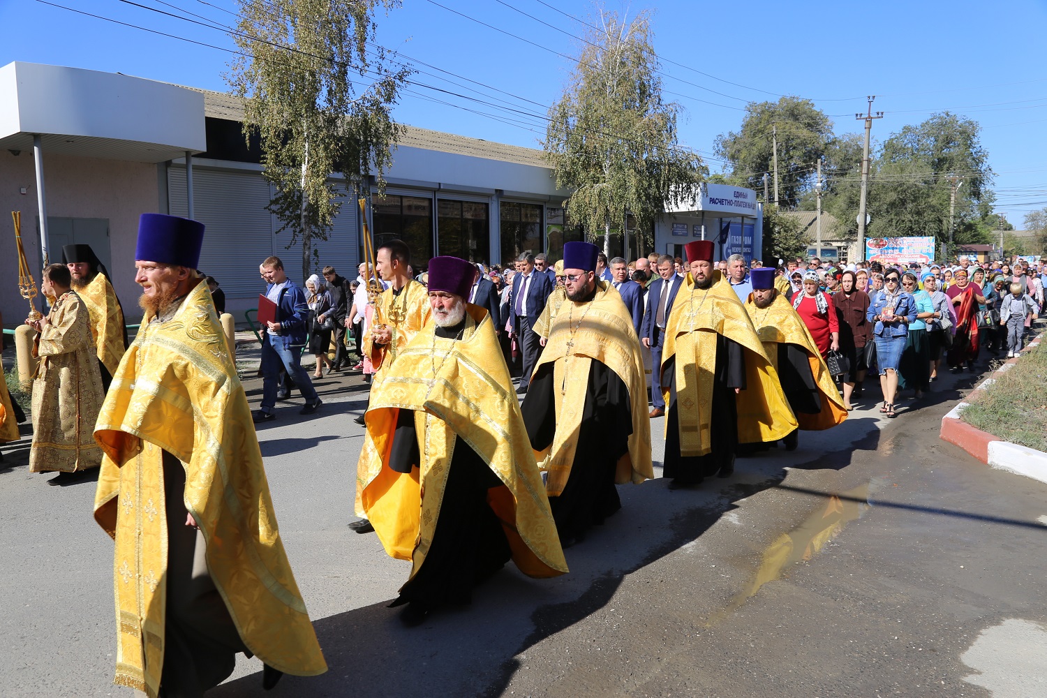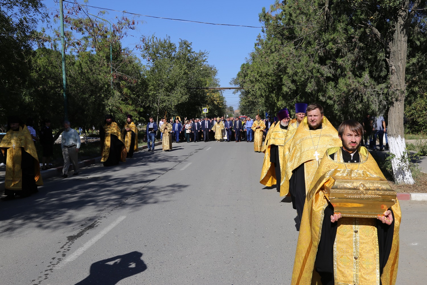 Крестный ход с иконами праздника Воздвижения Честного и Животворящего Креста Господня, святого великомученика Георгия Победоносца с частицей мощей и святого праведного Иоанна Русского, исповедника, с частицей мощей, собрал более двух тысяч православных верующих, которые преодолели путь длиной более 5 километров.