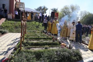 Крестный ход завершился у стен Свято-Георгиевского собора. На месте погребения прихожанок, погибших в результате вооруженного нападения 18 февраля этого года, владыка Варлаам совершил заупокойную литию.