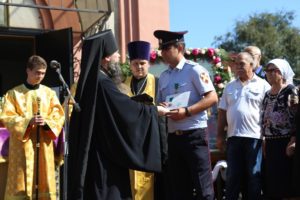 Директор Кизлярского коньячного завода Евгений Дружинин поздравил собравшихся с замечательным событием и вручил в дар Свято-Георгиевскому собору ключи от нового автомобиля.