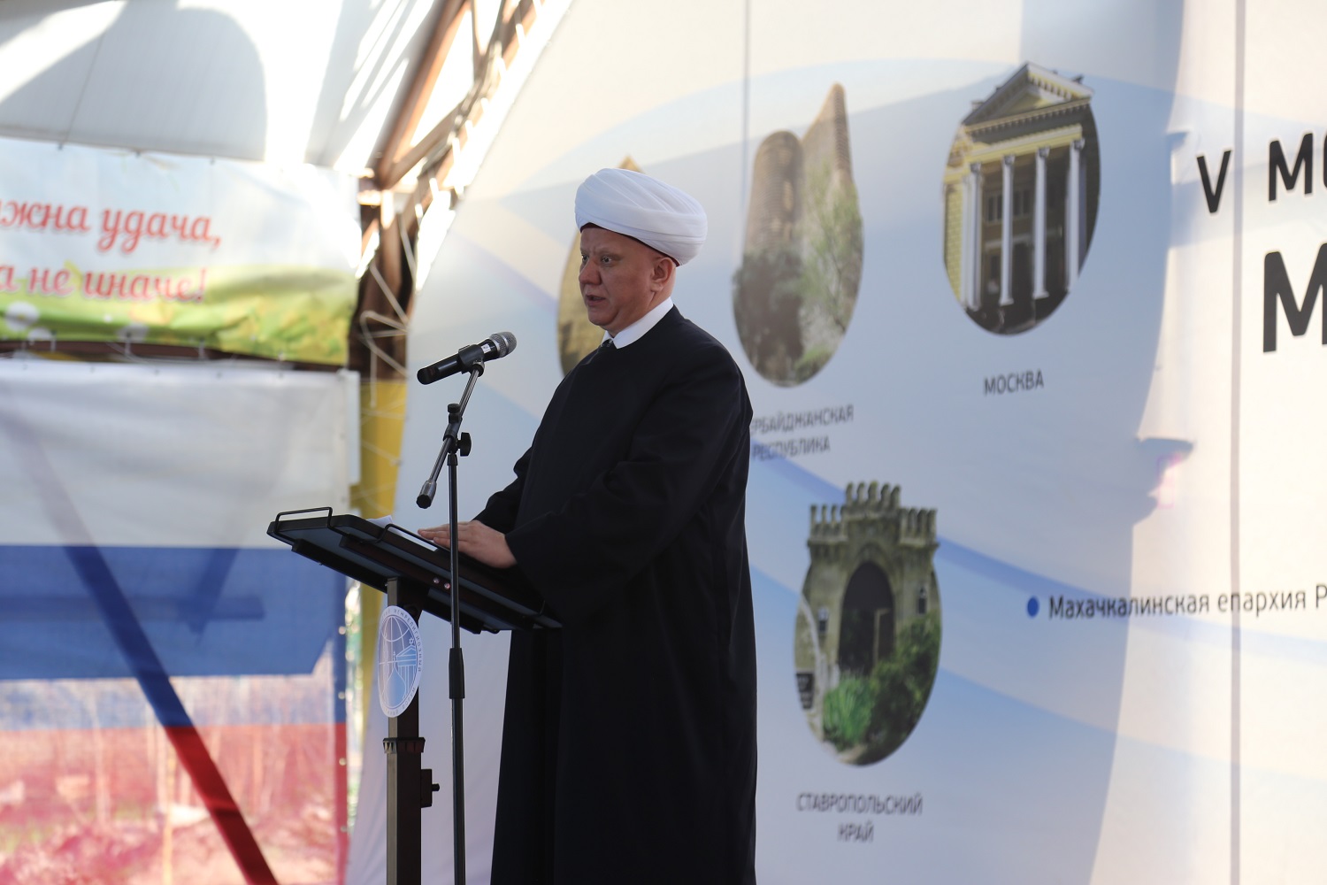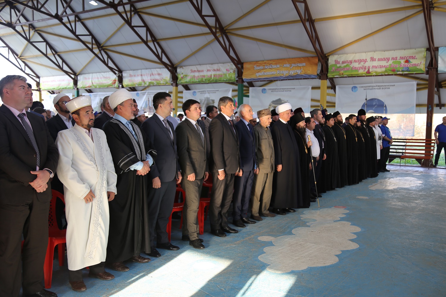 Врио председателя Дагкомрелигии Магомед Абдурахманов объявил V Международный межрелигиозный молодежный форум открытым, после чего все встали и прослушали исполнение Государственного гимна РФ и гимна Республики Дагестан.
