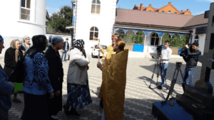 Перед тем, как паломники тронулись в путь, благочинный Магасского церковного округа иеромонах Иоанн (Анисимов) совершил молебное пение во дворе Ново-Синайского мужского монастыря в г. Сунжа РИ, откуда отправлялся автобус в Москву, после чего окропил богомольцев святой водой и пожелал помощи Божией в пути.