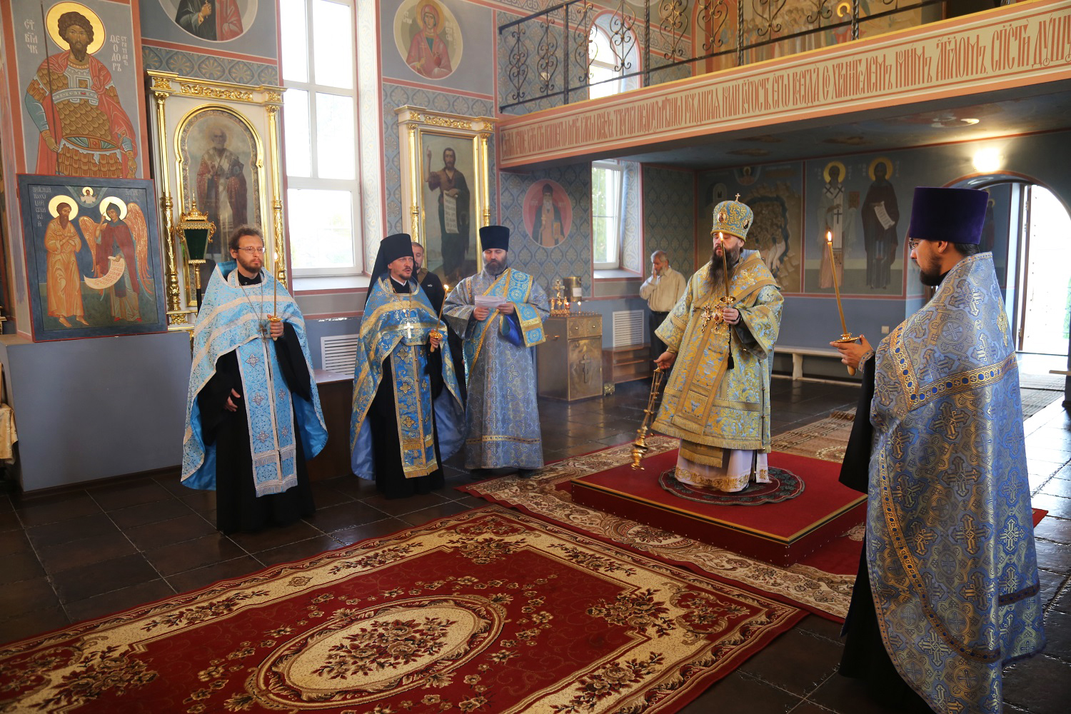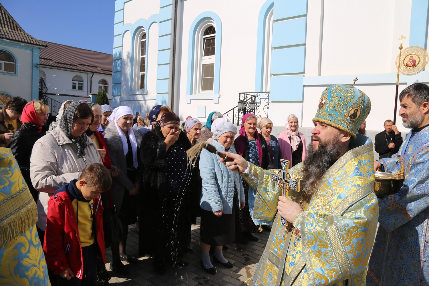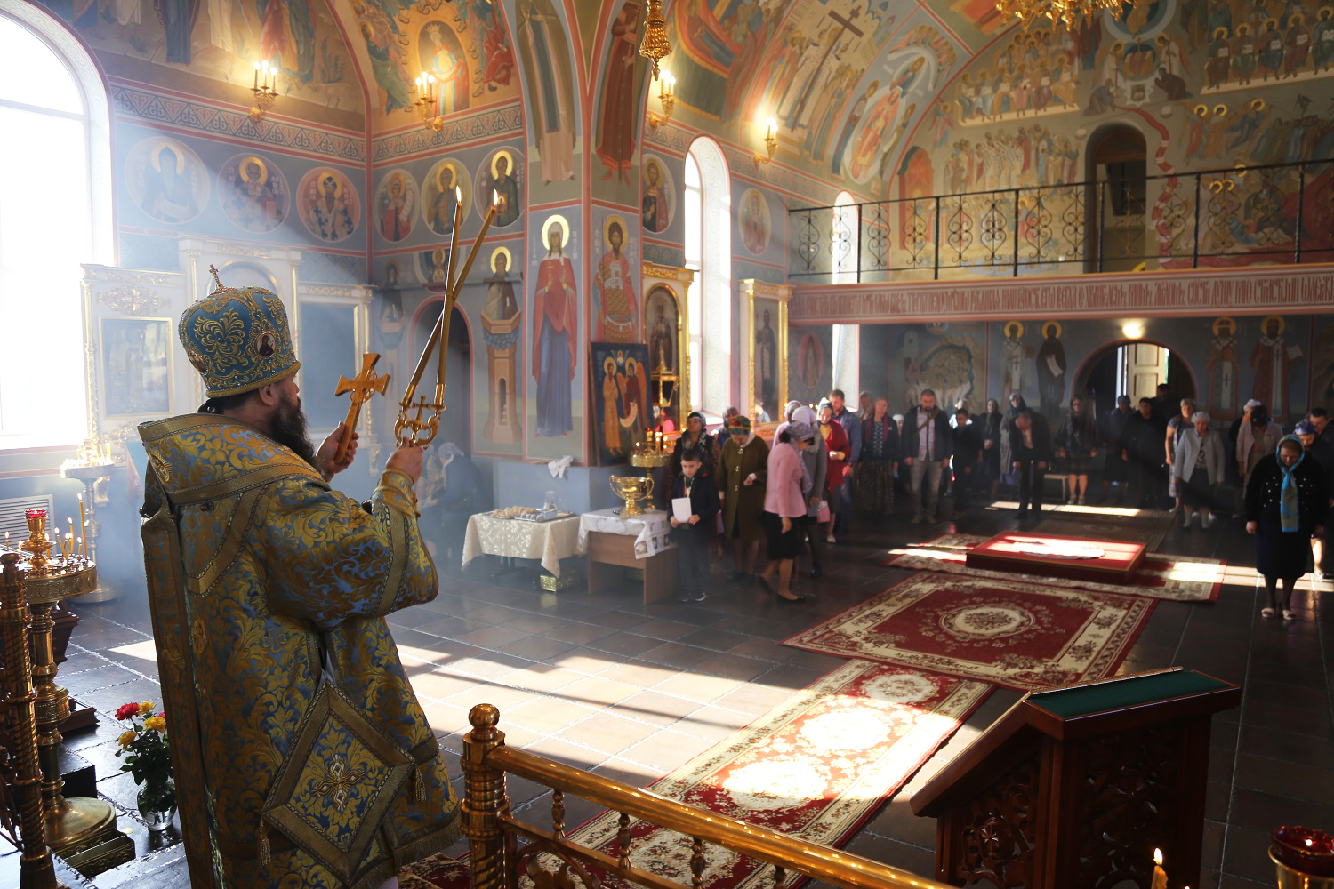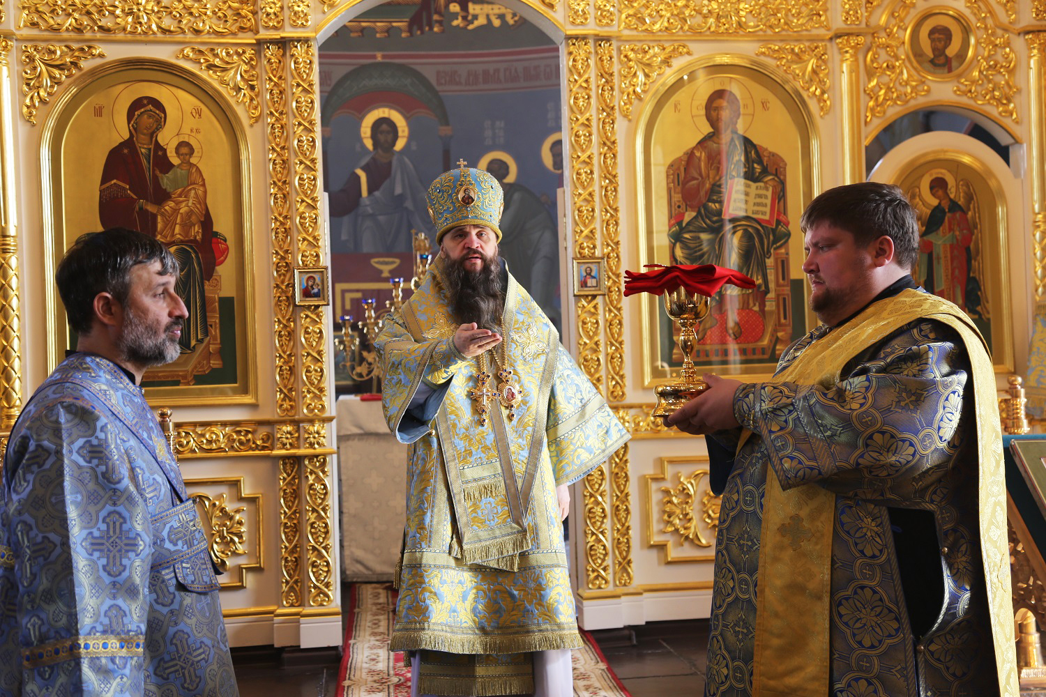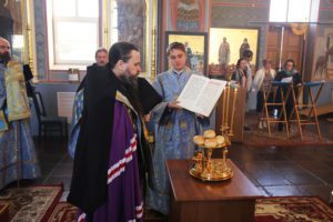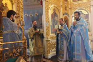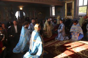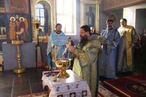 Перед началом Божественной литургии владыка Варлаам совершил водосвятный молебен с чтением акафиста Покрову Пресвятой Богородицы.