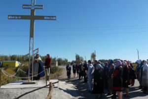 По окончании богослужения священнослужитель и прихожане крестным ходом прошли до выезда из села, где состоялась торжественная церемония открытия нового Поклонного креста.