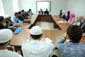 Здесь и.о. начальника информационно-аналитического отдела Комитета по свободе совести, взаимодействию с религиозными организациями РД Магомед Магомедов перед началом лекции кратко охарактеризовал ситуацию в сфере межконфессиональных отношений в Дагестане, отметив положительную динамику и конструктивное сотрудничество представителей основных конфессий.