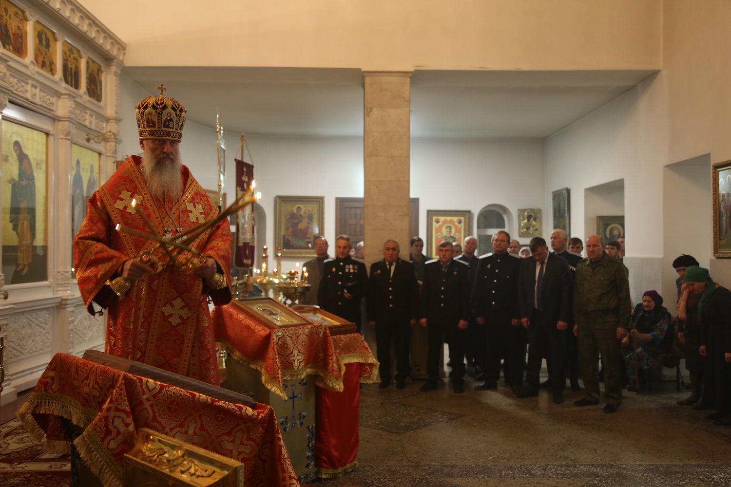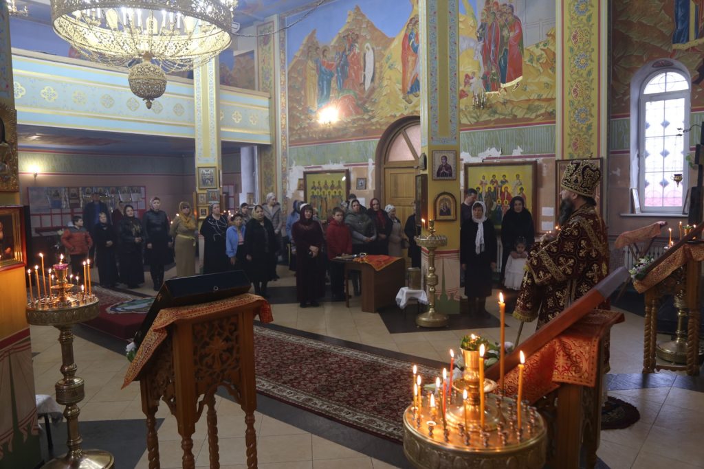 Накануне вечером архиереи совершили всенощное бдение в Свято-Георгиевском соборе г. Кизляра (Республика Дагестан). На богослужении присутствовал глава Кизлярского района Александр Погорелов.