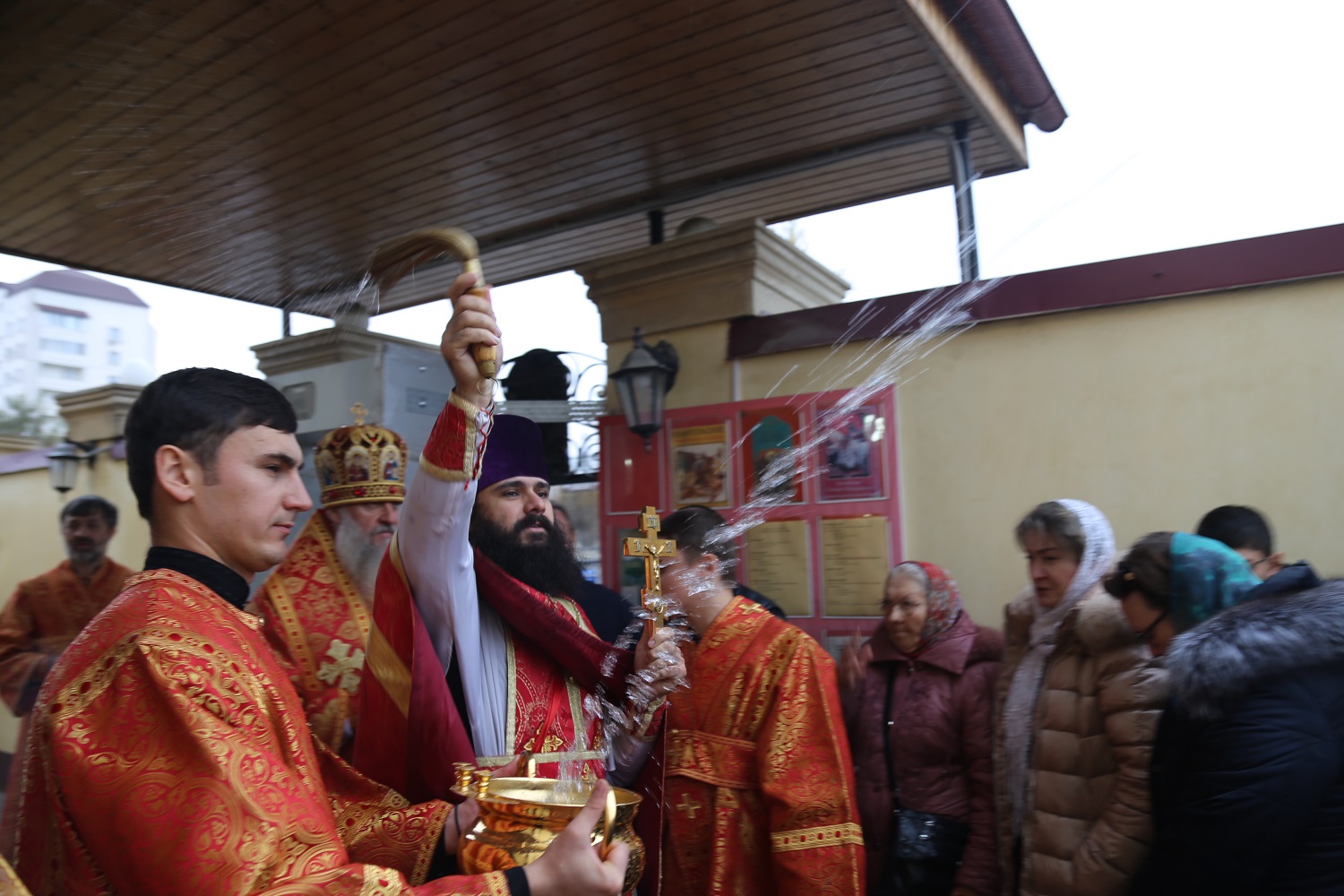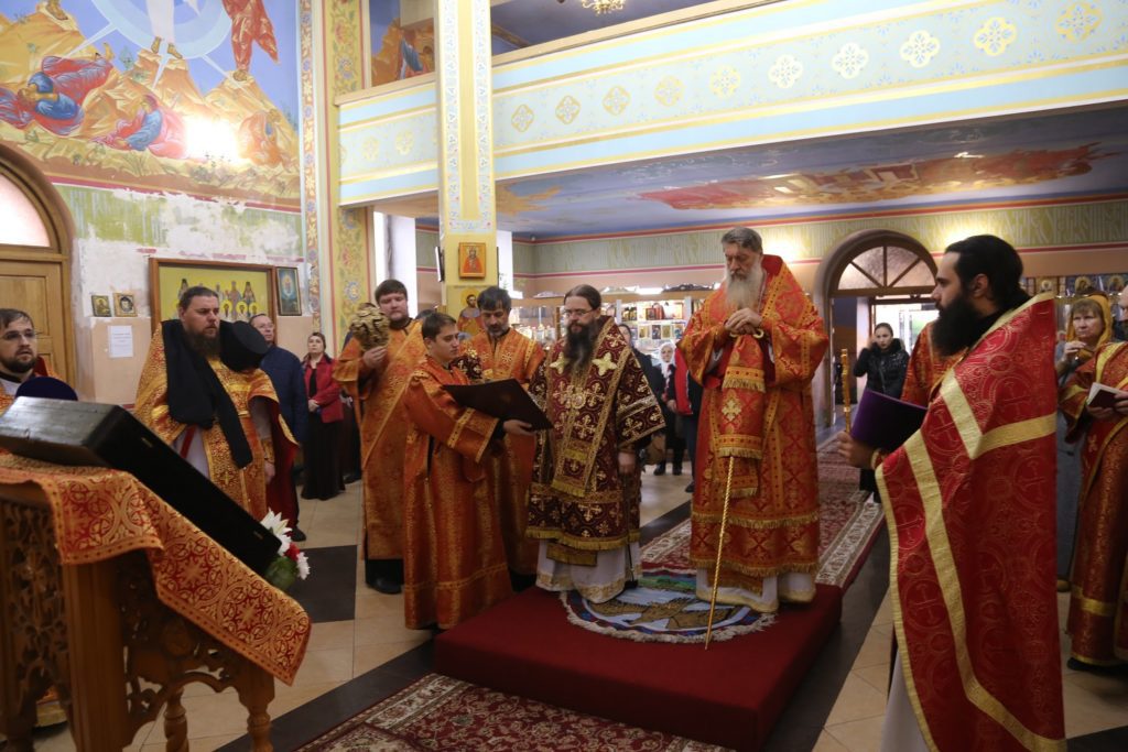 Затем перед иконой Архистратига Божия Михаила была вознесена молитва и пропето величание, после чего провозглашены уставные многолетия.