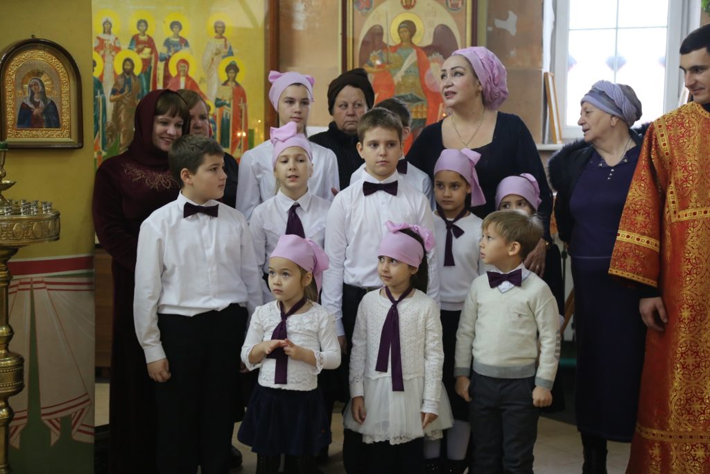 По окончании богослужения состоялся небольшой концерт, подготовленный воспитанниками воскресной школы. Дети продекламировали стихи и исполнили духовные песнопения.