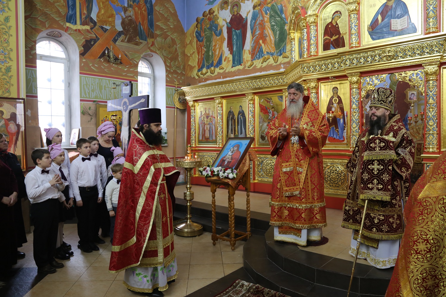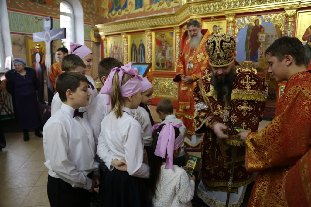 Владыка вручил ребятам сладкие подарки, поблагодарил отца Амвросия за труды и еще раз поздравил всех с престольным праздником.