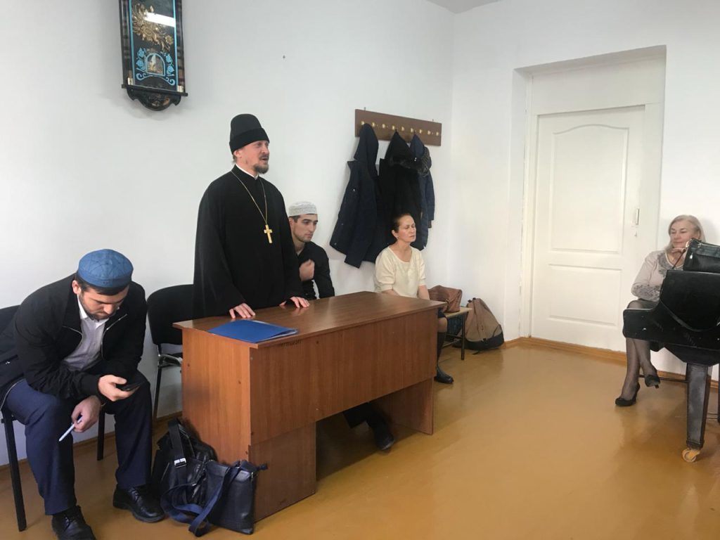 По благословению архиепископа Махачкалинского и Грозненского Варлаама во встрече принял участие руководитель епархиального отдела по взаимоотношениям Церкви с обществом и СМИ иеромонах Иоанн (Анисимов).