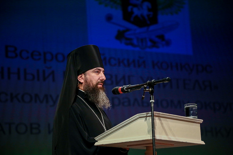 Среди участников заседания — епископ Георгиевский и Прасковейский Гедеон и ответственный секретарь конкурса «За нравственный подвиг учителя» — заведующий сектором мероприятий и конкурсов Синодального отдела религиозного образования и катехизации иеромонах Трифон (Умалатов).